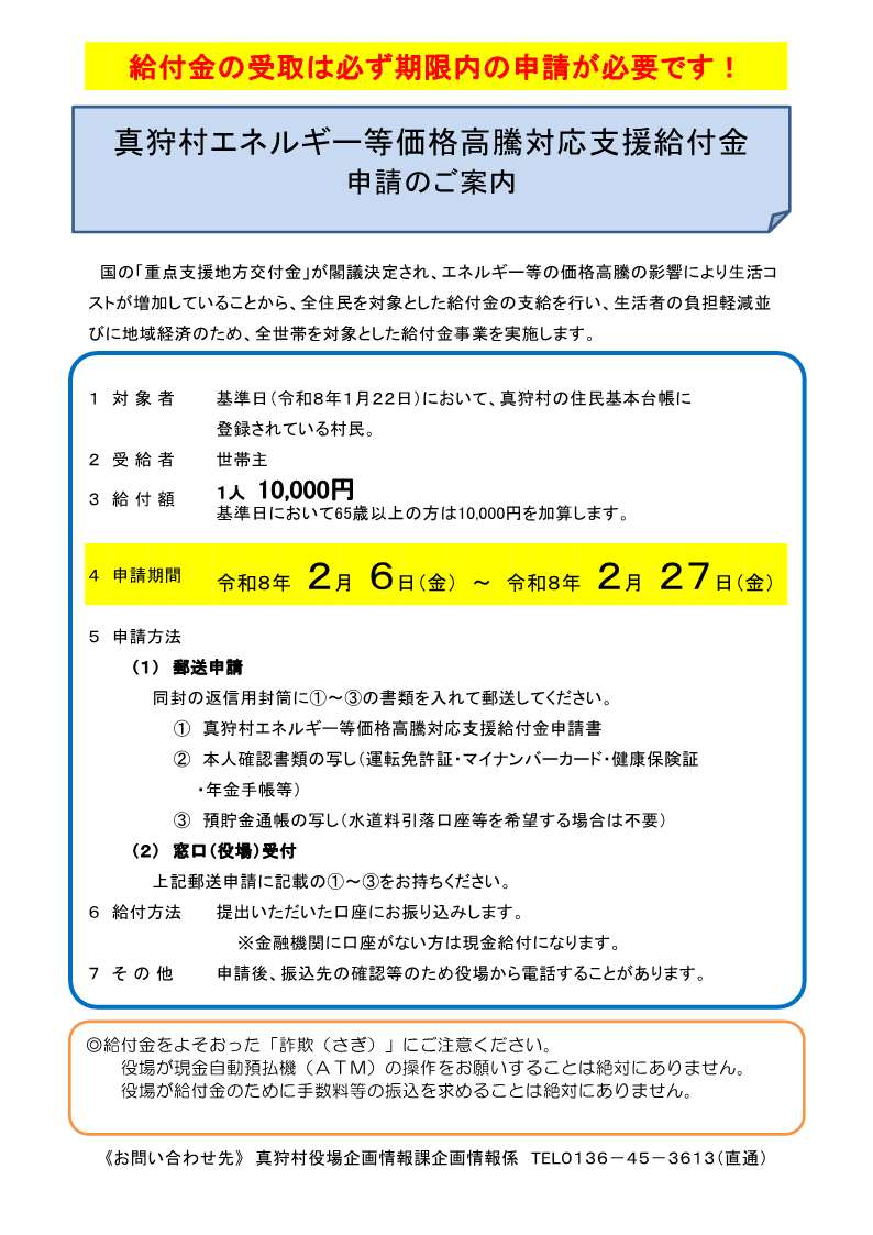 真狩村エネルギー等価格高騰対応支援給付金申請のご案内